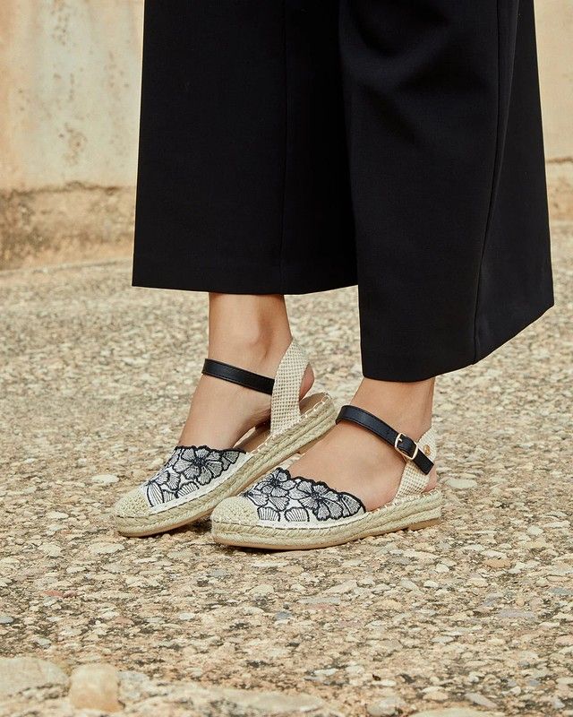 Scopri il perfetto equilibrio tra tradizione e comfort con queste espadrillas di ispirazione mediterranea. Realizzati con una parte anteriore chiusa e dettagli ricamati, aggiungono un tocco delicato e femminile a qualsiasi look. La sua soletta imbottita garantisce un passo morbido, ideale per accompagnarti tutto il giorno. Perfetto da indossare con abiti estivi, pantaloni fluidi o gonne midi. Un capo essenziale di stagione con un tocco sofisticato.