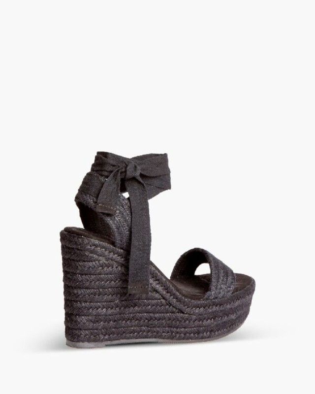 Elegante sandalo con zeppa in sparto della marca Corina, una scarpa stilizzata e moderna. Questo sandalo è caratterizzato dalla zeppa in sparto, un materiale naturale che dona un tocco estivo e artigianale. La caratteristica distintiva di questo modello è il cinturino sul collo del piede, realizzato in sparto intrecciato nero, che offre un contrasto elegante e versatile. Per una vestibilità ottimale, include un elemento di fissaggio sul retro. Inoltre, risalta la sua chiusura composta da corde che si collegano attorno alla caviglia, fornendo sia supporto che un attraente dettaglio decorativo. Queste caratteristiche rendono il sandalo un'ottima opzione sia per look casual che eleganti, unendo comfort e stile nelle calzature estive. Ottieni il tuo colore preferito, disponibile in nero, oro e naturale.